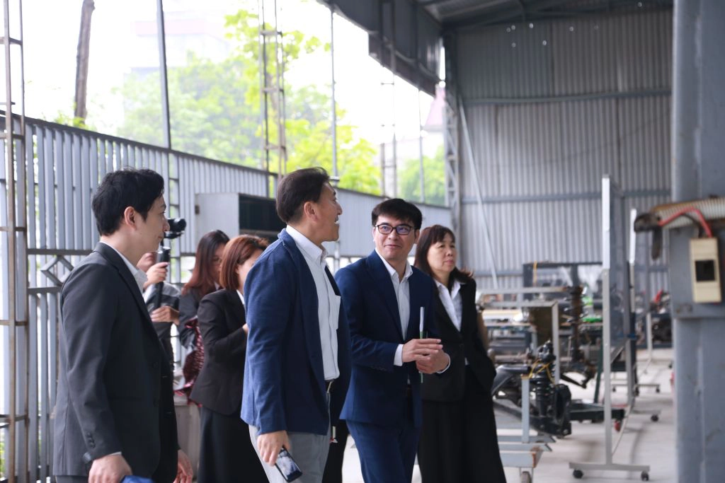 Cuối buổi, đoàn đối tác có dịp thăm các lớp học tiếng Nhật, Công nghệ thông tin, Công nghệ Kỹ thuật Cơ điện tử, phòng Terumo, Xưởng thực hành Ô tô, khu trưng bày hệ thống khoan kích ngầm, công trình Tòa nhà N02 trong khuôn viên nhà trường.