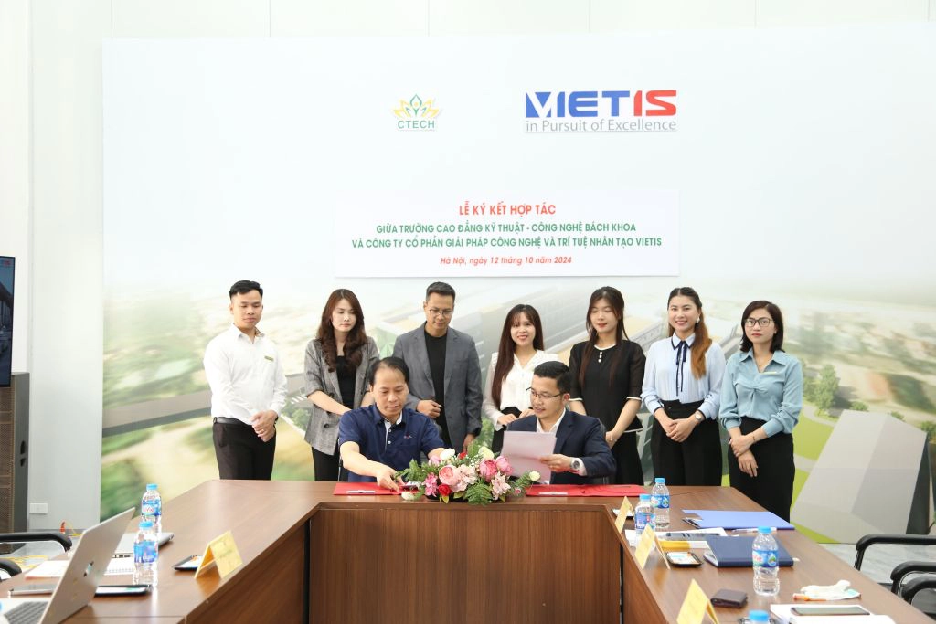 Sáng 12/10/2024, Trường Cao đẳng Kỹ thuật - Công nghệ Bách Khoa (CTECH) đã chính thức ký kết thỏa thuận hợp tác với Công ty Cổ phần Giải pháp Công nghệ và Trí tuệ Nhân tạo VIETIS, mở ra nhiều cơ hội về thực tập và việc làm cho sinh viên khối ngành Công nghệ Thông tin.