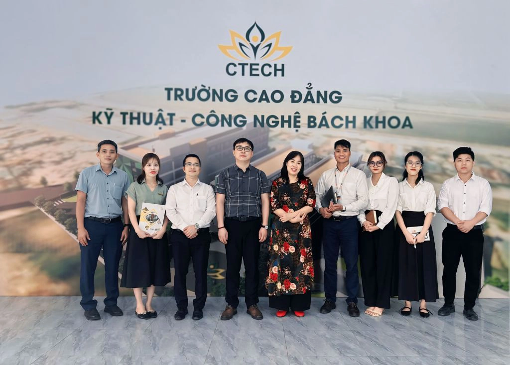 Sáng 14/05/2024, Trường Cao đẳng Kỹ thuật - Công nghệ Bách Khoa (CTECH) vinh dự tiếp đón ông Lư Tuấn, Tổng giám đốc cùng đoàn cán bộ Công ty TNHH Công nghệ Tô Châu Funa-AI Việt Nam đến thăm và làm việc với nhà trường. Đại diện CTECH tham dự buổi gặp mặt có TS. Lê Kim Dung - Hiệu trưởng, ThS. Hà Ngọc Anh - Phó hiệu trưởng cùng 1 số cán bộ giảng viên của nhà trường.