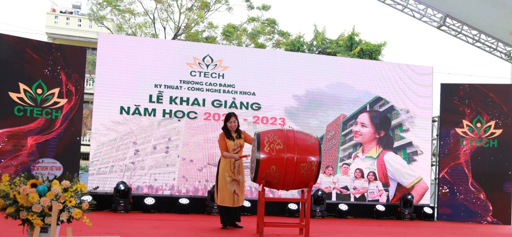 TS. Lê Kim Dung đã đánh lên hồi trống khai trường trong tiết trời mùa thu tuyệt đẹp - mùa của ngày tựu trường. Thời khắc tiếng trống trường đã điểm, toàn bộ thầy cô, sinh viên cùng vỗ tay theo nhịp trống. Tiếng trống trường đã vang lên, báo hiệu một năm học mới bắt đầu, hứa hẹn một năm học với những thành công mới, với thách thức mới. Hy vọng rằng: tập thể cán bộ, giảng viên và sinh viên trường Cao đẳng Kỹ thuật – Công nghệ Bách Khoa sẽ cùng nhau quyết tâm hoàn thành xuất sắc nhiệm vụ, chúc cho trường Cao đẳng Kỹ thuật – Công nghệ Bách Khoa luôn vững mạnh và phát triển!