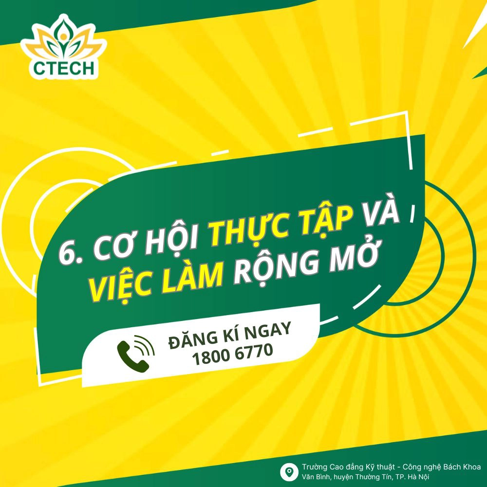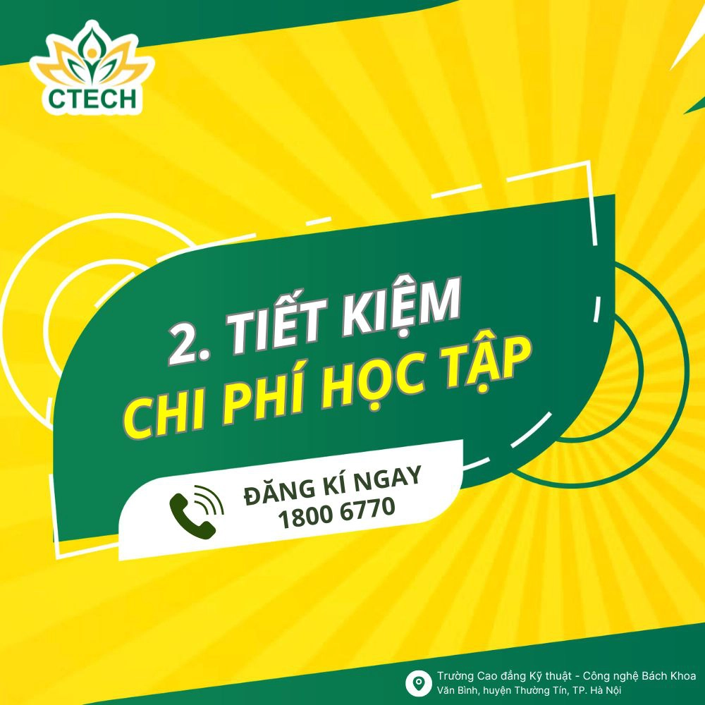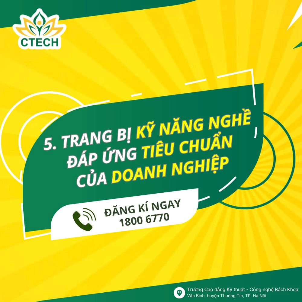 Là đơn vị giáo dục nghề nghiệp uy tín trực thuộc Bộ Lao động, Thương binh & Xã hội, sứ mệnh của CTECH là không ngừng nâng cao chất lượng đào tạo và hoàn thiện hệ sinh thái giáo dục toàn diện nhằm mang đến nguồn nhân lực chất lượng cao cho đất nước.Lựa chọn CTECH là nơi trau dồi bản thân để tự tin gia nhập thị trường lao động, sinh viên sẽ được hưởng nhiều lợi thế như: