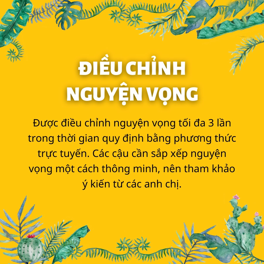 1) Xem xét lại các nguyện vọng của mình, ưu tiên cho ngành học và trường học mình thực sự yêu thích.