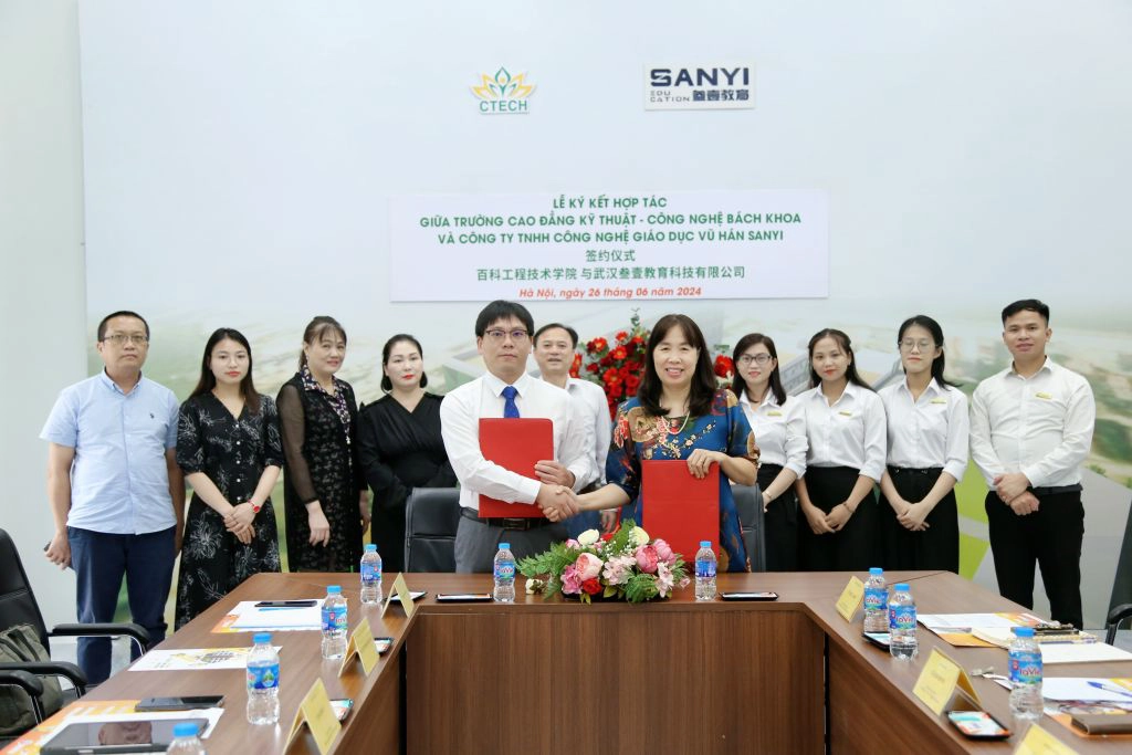 Sáng 26/06/2024, tại trụ sở chính Trường Cao đẳng Kỹ thuật - Công nghệ Bách Khoa (CTECH) đã diễn ra Lễ ký kết hợp tác giữa nhà trường và Công ty TNHH Công nghệ giáo dục Vũ Hán Sanyi (Trung Quốc).