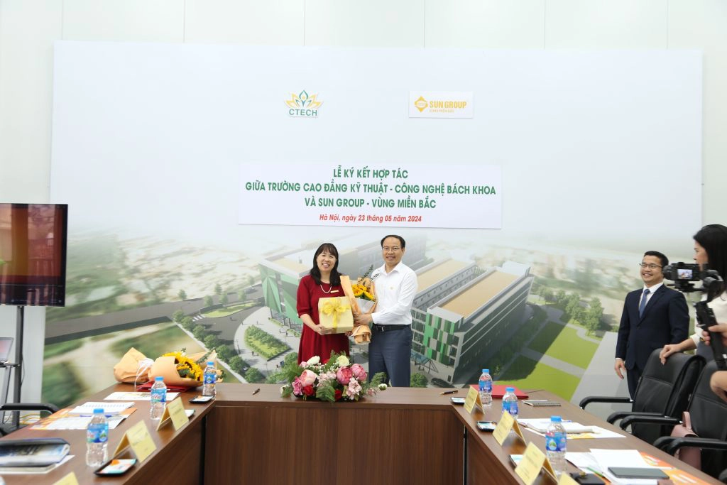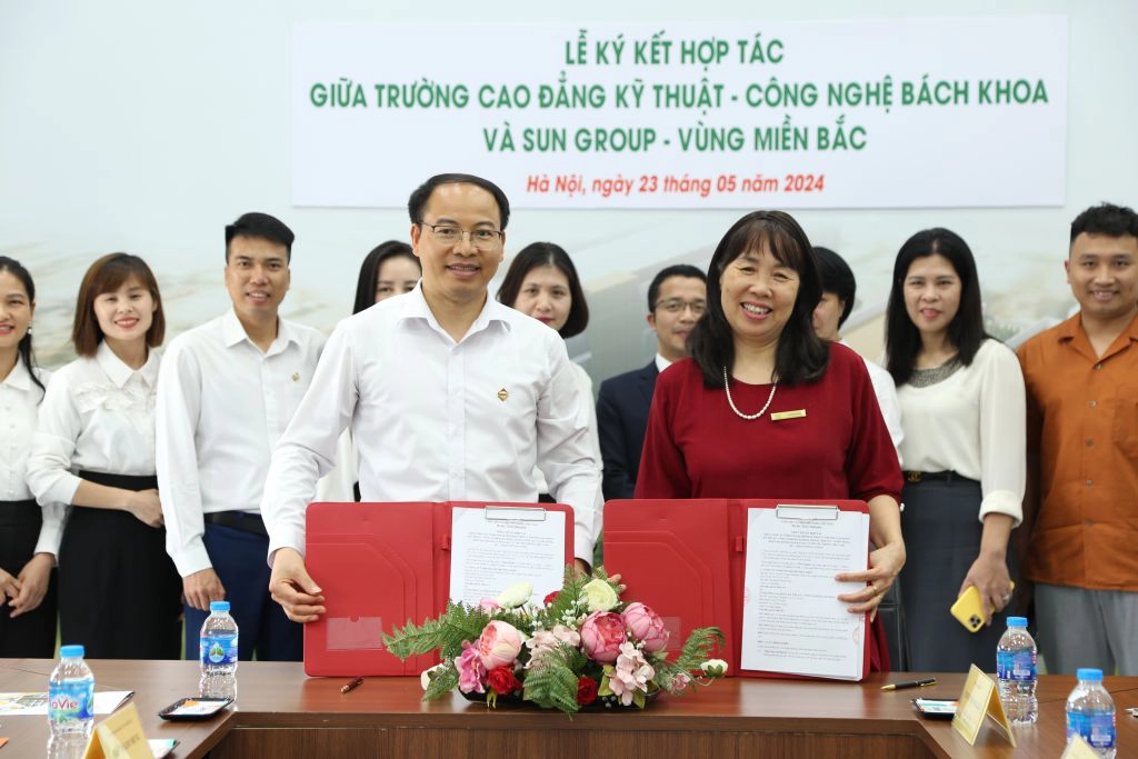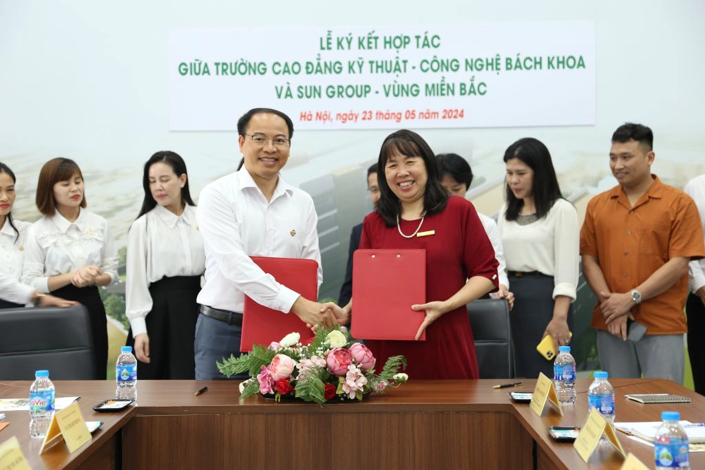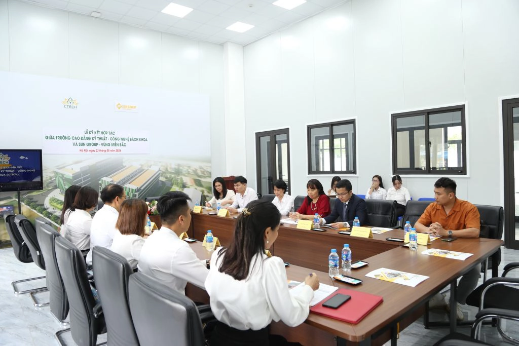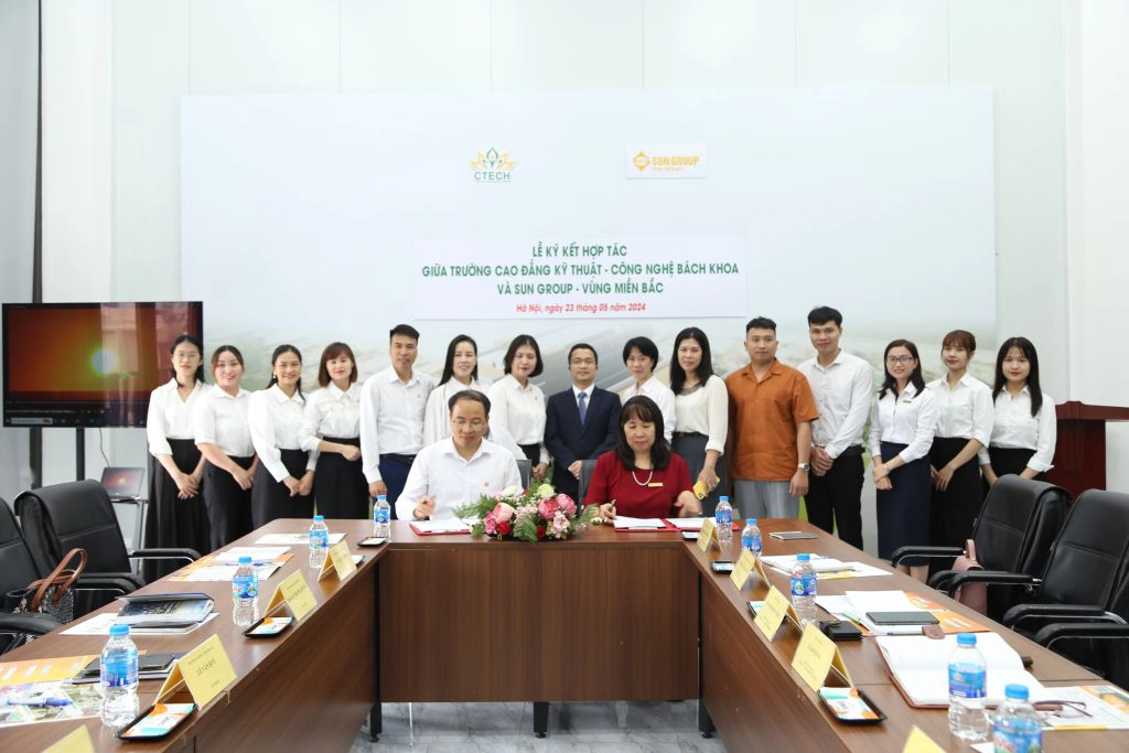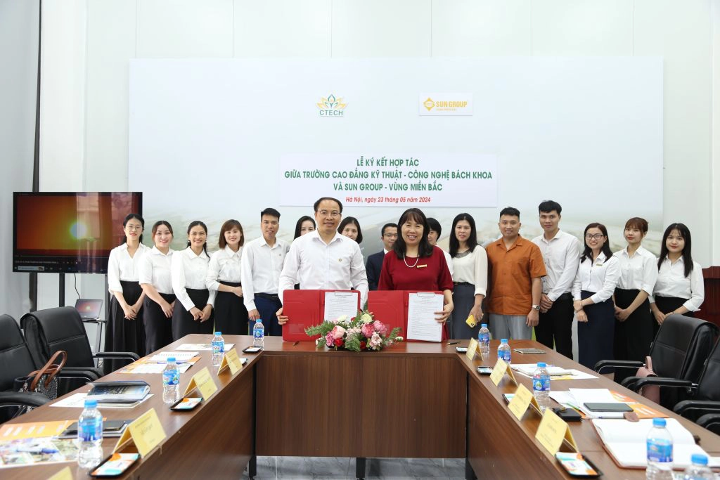 Chiều 23/05/2024, tại Trường Cao đẳng Kỹ thuật - Công nghệ Bách Khoa (CTECH) đã diễn ra Lễ ký kết thỏa thuận hợp tác giữa nhà trường và Sun Group - Vùng Miền Bắc.