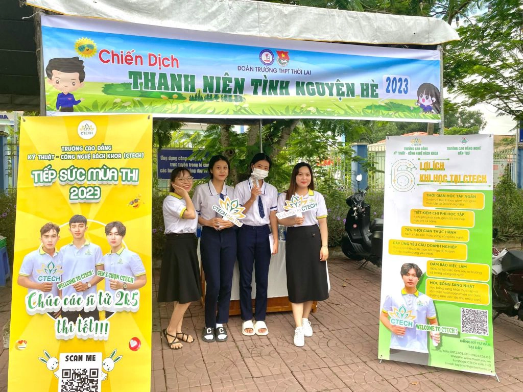 Phối hợp cùng các đơn vị Đoàn cơ sở, CTECH Cần Thơ cũng nhanh chóng triển khai đội hình Tiếp sức mùa thi tại 2 điểm trường THPT Thới Lai và THPT Hà Huy Giáp.