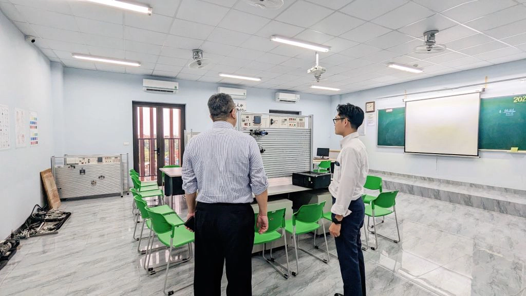 Đoàn cũng có dịp tham quan và bày tỏ ấn tượng với hệ thống cơ sở vật chất tại CTECH như các phòng học, phòng chức năng, dự án tòa nhà N2, xưởng thực hành Công nghệ Ô tô,…