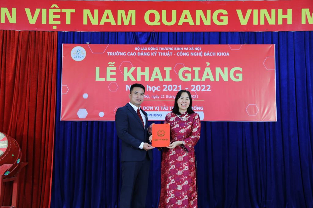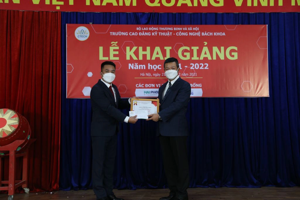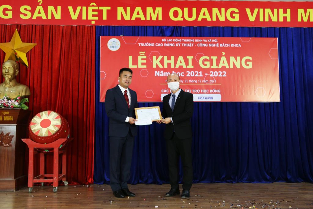 Cũng tại Lễ Khai Giảng năm học 2021 – 2022, Trường CĐ Kỹ thuật – Công nghệ Bách Khoa cùng các doanh nghiệp hợp tác đã trao các gói học bổng với tổng trị giá hơn 60 triệu đồng cho các bạn tân sinh viên có thành tích xuất sắc trong kỳ tuyển sinh năm học 2021 – 2022.