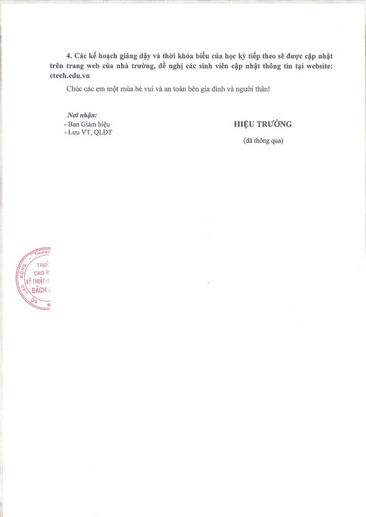 Thông báo điều chỉnh khung kế hoạch thời gian năm học 2020-2021