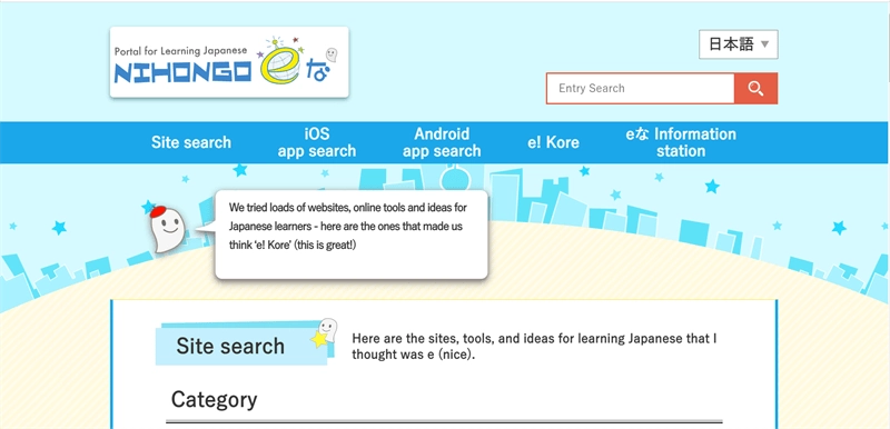 Nihongo-e-na là trang web học tiếng Nhật online tại nhà miễn phí mà bạn không thể bỏ qua hiện nay, với nội dung vô cùng phong phú cùng với thiết kế đồ họa khá đáng yêu và sinh động đây sẽ là trang web học tiếng Nhật cực kỳ hữu ích giúp bạn học tập và nâng cao trình độ tiếng Nhật của bản thân hiệu quả. Trang web sẽ rất phù hợp với các bạn đang ở trình độ sơ cấp, trung cấp.