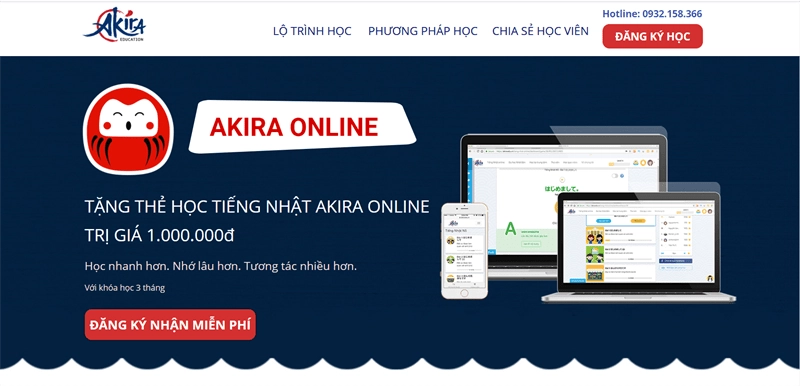 Web học tiếng Nhật online miễn phí Akira Education là website học tiếng Nhật tại nhà hàng đầu Việt Nam hiện nay, chương trình học tập bao gồm đầy đủ các nội dung luyện tập: từ vựng, ngữ pháp,… chắc chắn sẽ giúp bạn nắm vững kiến thức, cải thiện tốt trình độ tiếng Nhật của bản thân. Rất phù hợp cho các bạn mới khởi đầu học và trình độ sơ cấp.